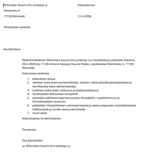Kevätkokouskutsu